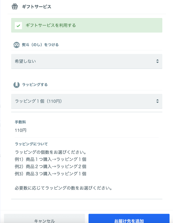 例2)商品2つ購入→ラッピング2個